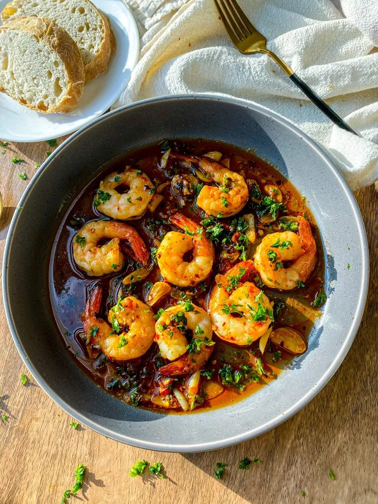 Garlic shrimp with lemon and parsley butter and grilled bread